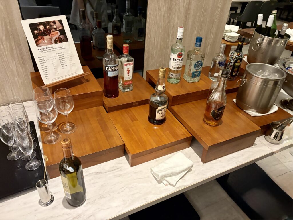 マリオットゴールド会員以上はアルコールを含むドリンク飲み放題
