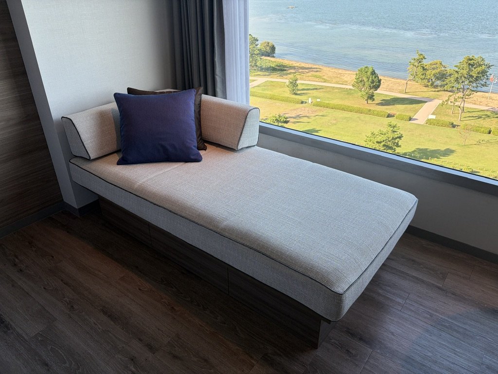 窓際には、琵琶湖を一望できるくつろぎスペースが用意されていました!